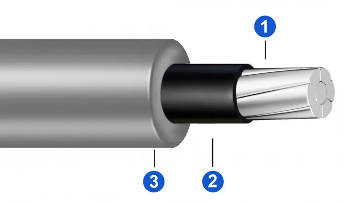 2B. Cubierta: Compuesto termoendurecible de polietileno reticulado (XLPE) – 90°C, resistente a las chispas eléctricas.