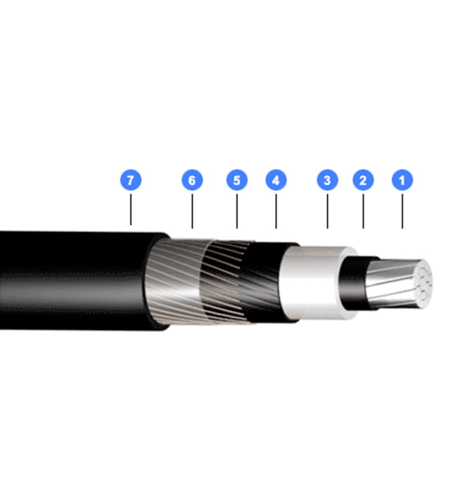 Blindagem do condutor: Composto termofixo semicondutor – 90 °C.