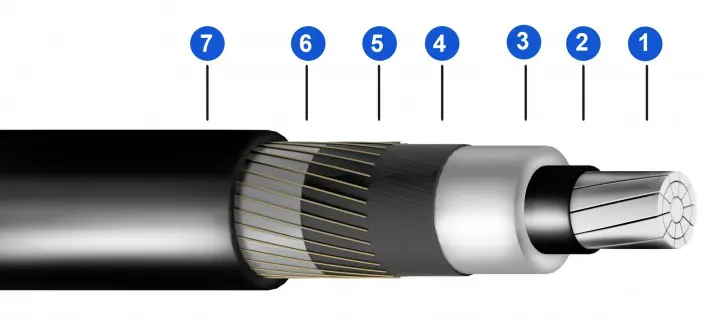 2. Blindagem do condutor: Camada de composto termofixo semicondutor.