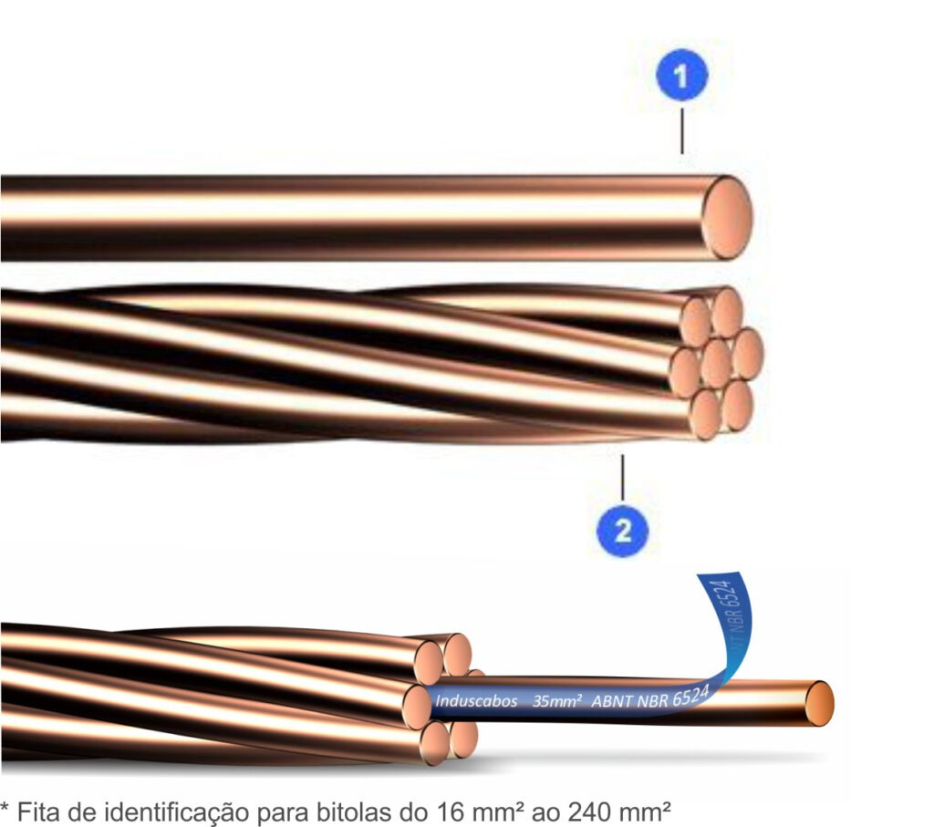 Obs. Os cabos de cobre nu com fita de identificação estão disponíveis nas bitolas de 16 mm² a 240 mm²